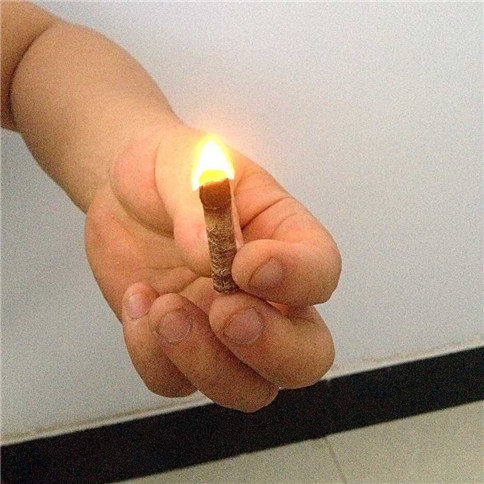壓制成的顆粒,直接用打火機(jī)點(diǎn)燃↑